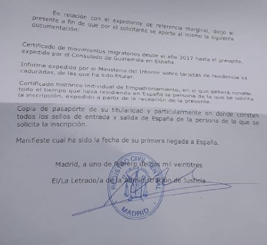 Uno de nuestros clientes solicitó la nacionalidad española por convenio. El Registro Civil Central le pidió: