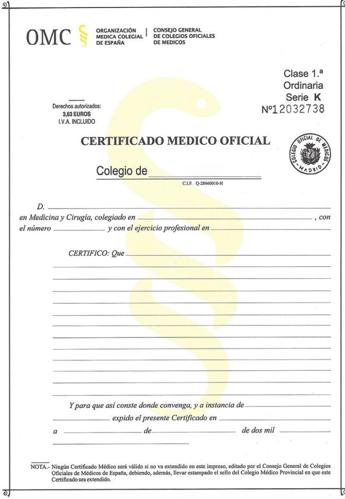Modelo Certificado Médico Madrid